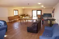 Wirtschaftsgebäude mit Speisesaal, ein großes Selbstversorgerhaus mit Küche, Kamin auf Anfrage, auch Beamer und Stereoanlage. Moderne Sanitäranlagen. 50 Autoparkplätze.