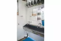 Einer weitverbreiteten Angst, auf einem Zeltlager gäbe es womöglich kein fließendes Wasser oder keine normalen Toiletten, wirken wir mit einem modernen und bestens ausgestatteten Sanitärhäusle entgegen. 4 Toiletten, 2 Duschenräume mit jeweils 2 Duschköpfen und einem großen Waschbecken, sowie viele außenliegende Wasserhähne bieten genügend Gelegenheit, sich zu pflegen und nahezu wie zu Hause zu fühlen.