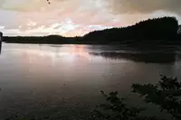 Ein ca. 400 x 700 m großer Weiher liegt direkt neben unserem Lager. Durch das Moorgebiet zeichnet er sich durch eine ausgezeichnete Wasserqualität aus. Das trübe Aussehen mag manch einen abschrecken, doch er ist zum Baden sehr gut geeignet. Die Badestelle ist befestigt und der Einstieg erfolgt über 3 Stufen. Der Wasserstand ist jedes Jahr unterschiedlich, doch meist können die Kinder am Rand noch sehr gut stehen.