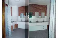zwei getrennte Waschräume mit je einer Duschmöglichkeit (Warmwasser)