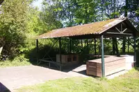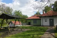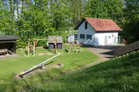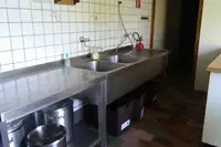 Zeltplatzgelände auf 3 Ebenen, direkt am Wald gelegen und 1 km vom Ort entfernt;- Vollausgestattete Küche mit Geschirr für ca. 100 Personen;