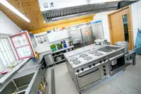 Die Küche ist mit allen wichtigen Geräten und Küchenhilsmitteln ausgestattet. Geschirr wie Teller, Tassen, Gläser und Besteck bitte selbst mitbringen.Ausstattung der Küche: