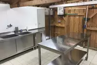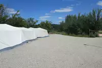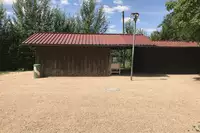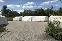 Waschräume mit Duschen, Außendusche, behindertengerechter Sanitärraum, vier Mannschaftszelte (6 x 6 m), Tischtennisplatte, KiesbodenFreizeit