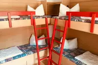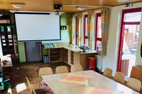 Bungalowsiedlung mit 72 Betten in 18 Bungalows inkl. DU/ WC und Heizung, Gemeinschaftshaus für Feiern und Seminare im Bungalowdorf mit zwei voneinander unabhängigen Räumen zu je 40 Plätzen und einer Freiterrasse,Hauptgebäude mit 61 Betten in 2 bis 8 Bett-Zimmern mit einfachem Standard, z. T. Waschbecken im Zimmer, DU/ WC als Gemeinschaftsanlagen im Erdgeschoß.